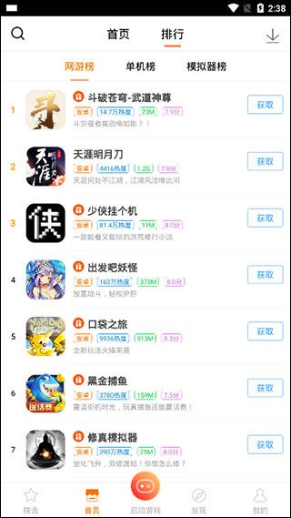 2、同时还罗列了网游榜、单机榜、模拟器榜;