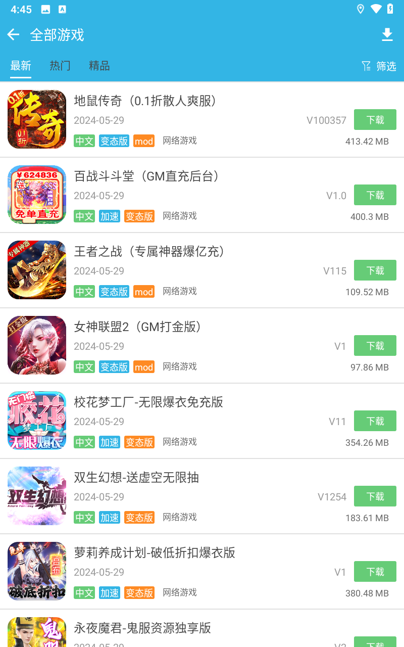 包含大量破解版、无限元宝钻石、满V版、GM特权服、bt游戏等超多的修改版本游戏资源,下载即可拥有,等你来体验。