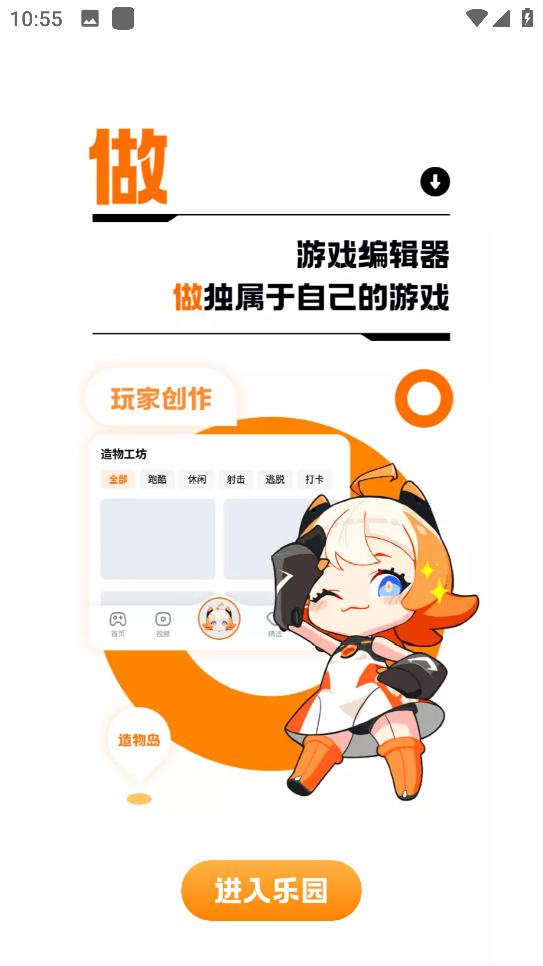 4、随后点击下方的人物头像栏目,给大家提供了造物岛功能,用户可以自由的给角色捏脸、换装以及地图创作等,自由度超级高,还能叫上好友一起玩耍哦!