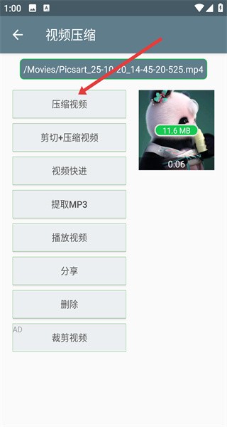 3、选好视频后,点击压缩视频按钮,进入压缩质量设置页面,以便选择合适的压缩参数。