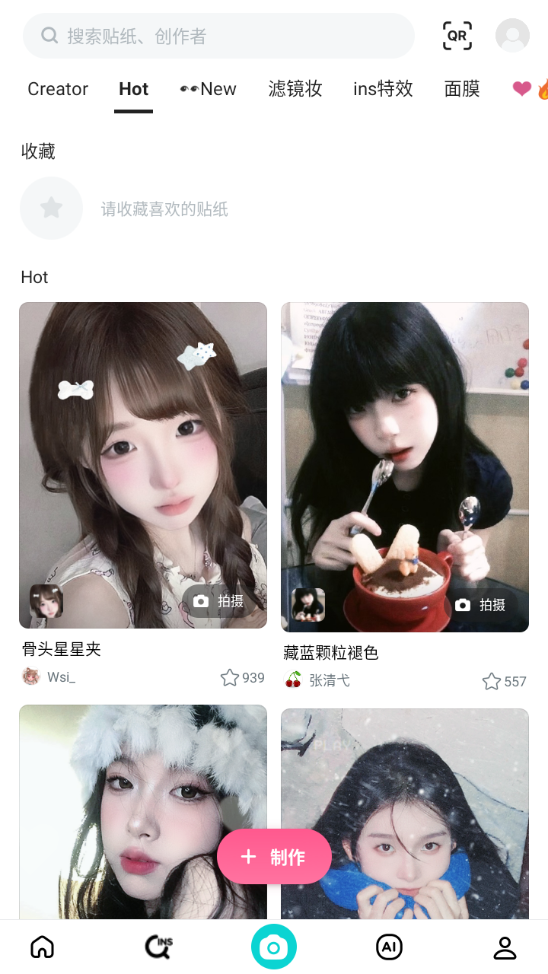超过1500种贴纸,从卖萌、搞怪、到混血辣妹,一秒钟带你变身!