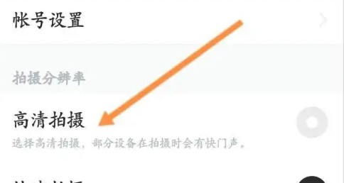 第三步,我们最后点击高清拍摄选项后方的按钮,来开启高清拍摄功能即可。