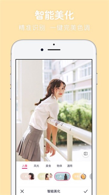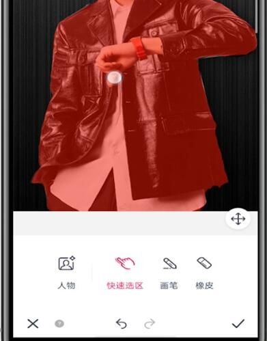 在编辑界面点击左下角的“人物”,然后点击界面右下角的“√”按钮,即可完成照片底色的更换。