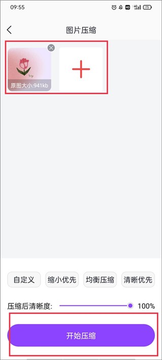 2、在你的相册中找到你想要压缩的图片,还可以批量压缩,然后点击下方的选项并开始压缩,压缩好了之后就可以保存到本地相册中去了。