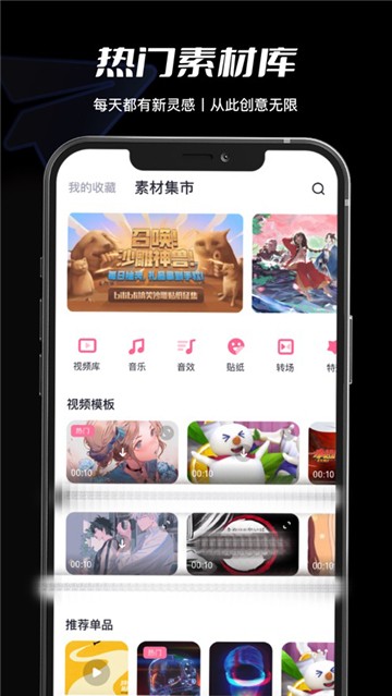 6、另外在必剪app的素材中心也为用户们提供了特效、贴纸、字幕、滤镜、背景、转场等海量内容。