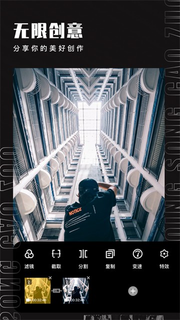 1、拥有全部的视频剪辑功能,简单的操作可以让用户快速的上手。