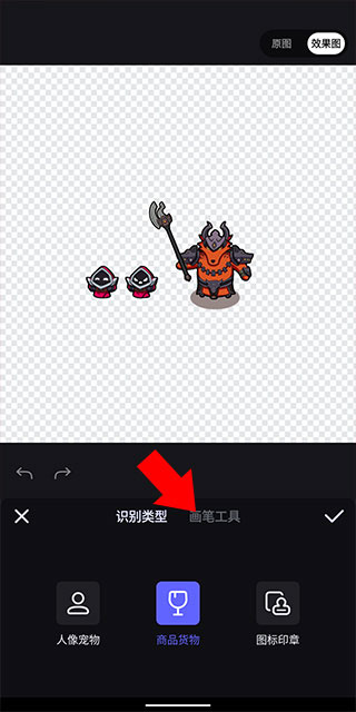 2、在打开的相册界面中选择想要抠图的图片并等待一段时间,可以看到图片背景已经被智能扣除,如果想要进一步扣除图片内容,点击下方的画笔工具;