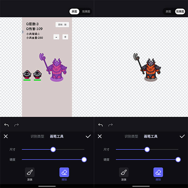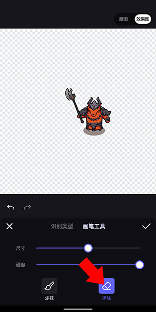 3、并选择涂抹、擦除其中之一,并使用手指在需要修改的画面上滑动,即可进一步扣除不需要内容;