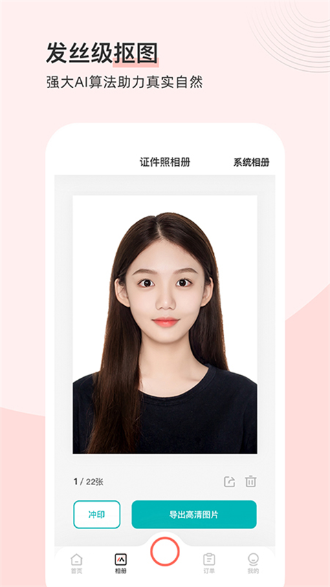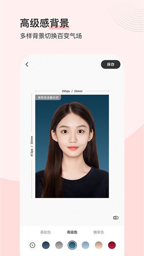 发丝级抠图引擎,ps小白的福音,傻瓜式操作智能完成精致抠图。配合标准多元化的背景底色,除了常规红蓝白,还增加高级色和糖果色,可根据不同的使用场景随意切换。展现你最美气质的同时,确保证件照的专业合规性,一图多用不是梦,旧图改造还能用!