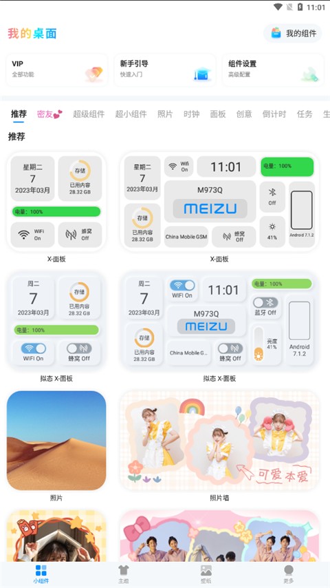 2、在上方我们还可以选择不同的类型的小组件,如照片、时钟、倒计时、任务、便签等等;