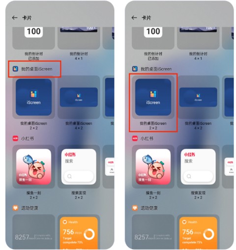 2、在列表中找到我的桌面iScreen,选择小组件尺寸,点击或拖动小组件到桌面;