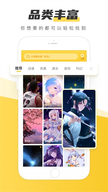 3、【品类丰富】风景动物,动漫游戏,美女明星,你想要的都可以轻松找到。