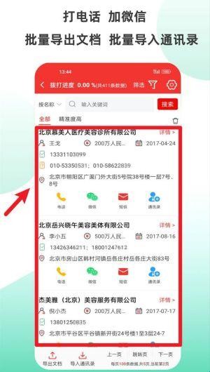 2、提供一键电话拨打、加微信、发短信及加入通讯录的操作按钮,并可直接批量导入到手机通讯录中使用。