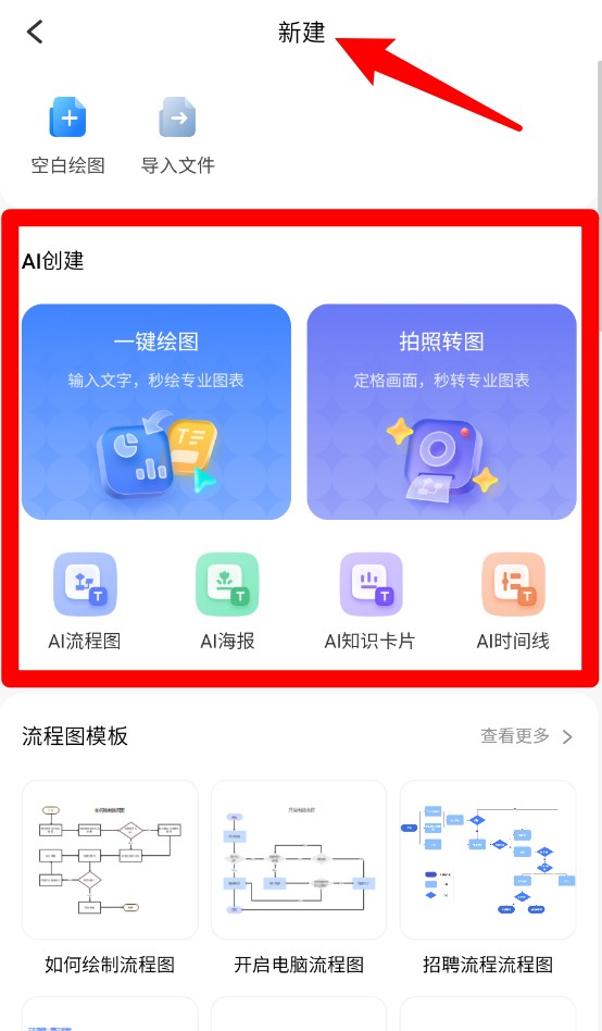 3、点击“新建”进入AI创作区,支持输入文本或上传照片自动生成专业图示结构。