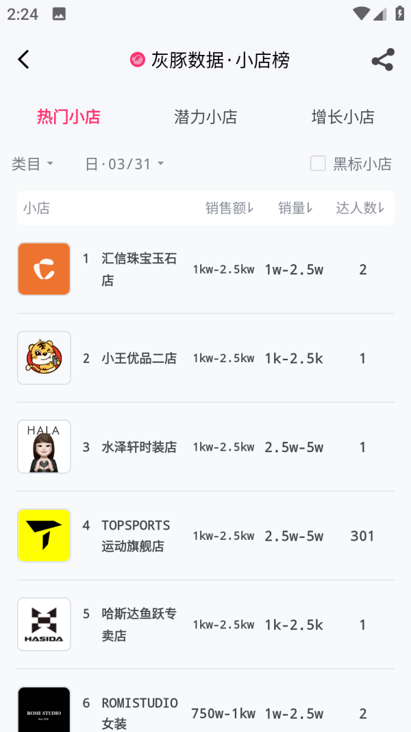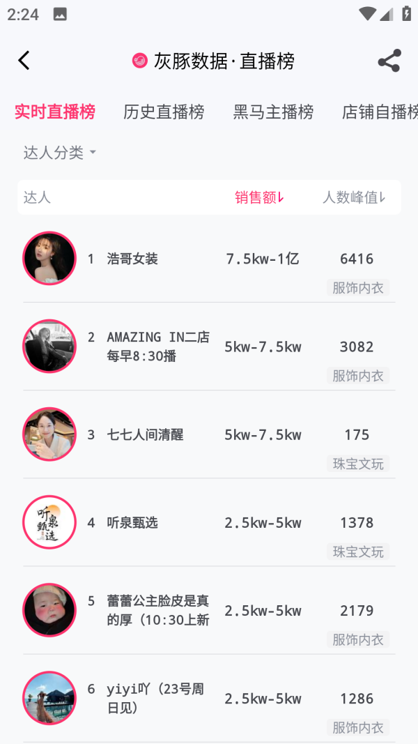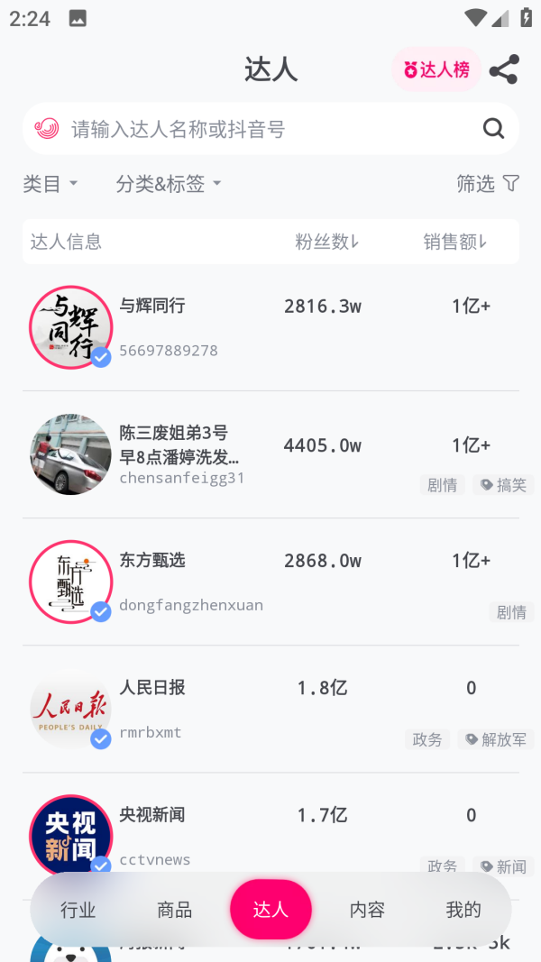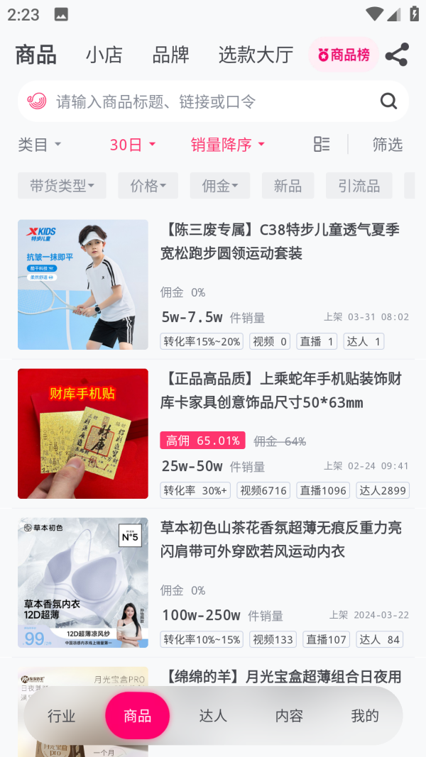 4、给我们提供了非常丰富的榜单类型,让我们可以自主选择品牌店铺和优质的带货达人。