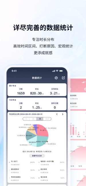 不仅可比拼时长,还可查看专注分布