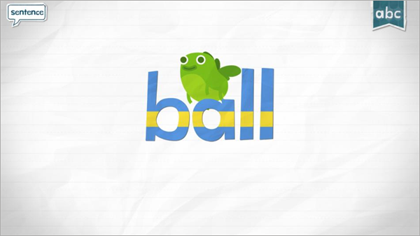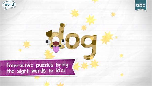 2、点击之后,萌系小怪物们就会把几个字母搬进屏幕,然后你就可以带着你的孩子正是开始英文单词学习喽。把每个字母填进相应的空缺中去,就完成了一个字母的挑战。