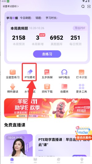 1、首先下载并注册羊驼PTE软件,完成基础信息设置。之后可以进行一次水平摸底测试,让系统了解你的当前能力。