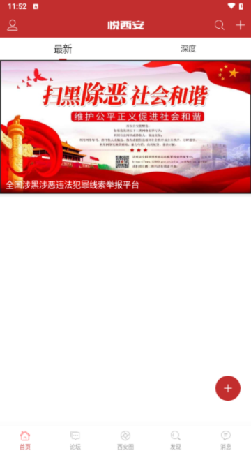 1、首先在手机上打开悦西安app,如下图所示,有最新资讯与深度资讯;