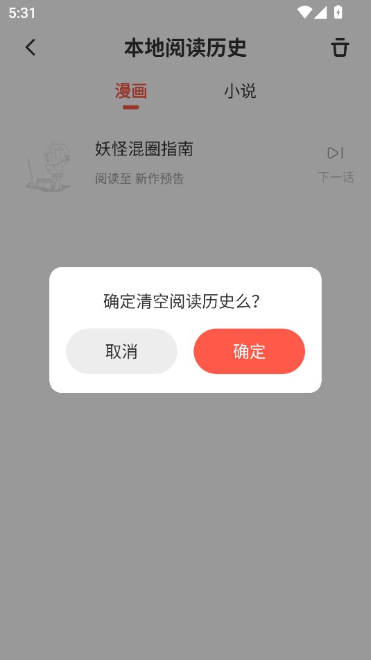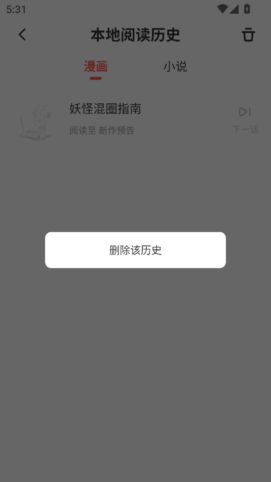 3、点击右上角的垃圾桶按钮可以删除所有历史