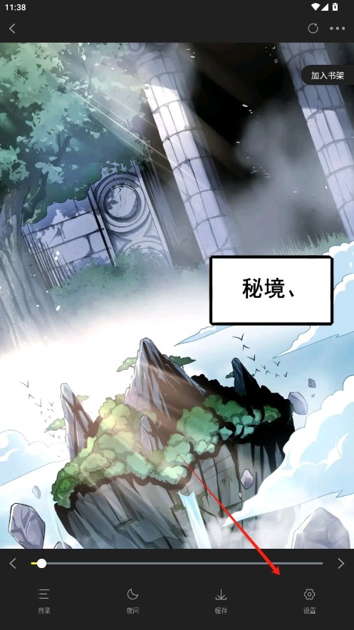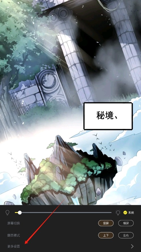 进入漫画阅读界面后,轻点屏幕中央区域可激活悬浮控制面板。在右侧功能列中定位齿轮状"设置"图标,点击进入二级设置菜单。