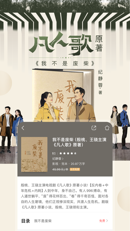 2、点击进入自己想要的小说,里面提供下载、加书架、ai听书等功能,点击免费试读;