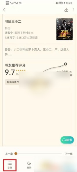 3、最后我们只需要点击【目录】就可以进入到目录界面中,上划和下划就可以找到想看的小说章节。