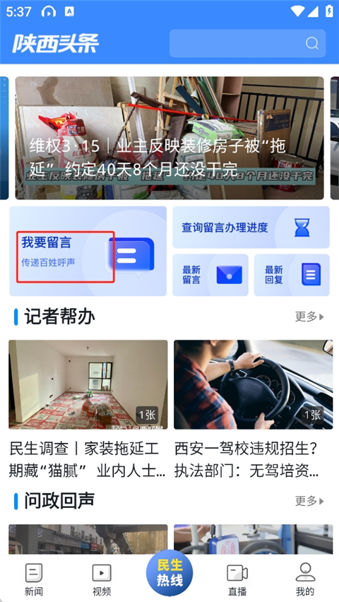 5、也可以在民生热线中,点击我要留言,可以查询回复。
