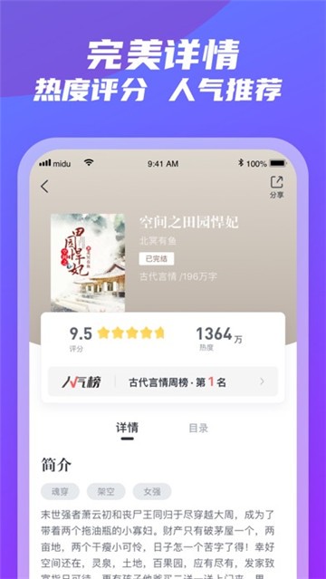 2、强大听书功能,人声朗读,离线听书,精彩小说听起来。
