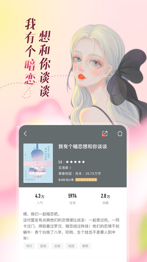 提供偷书、私信、签到、打赏、月票、晒书单等互动功能。