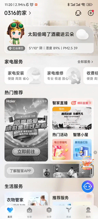 ·会员服务:您可以在智家APP领取会员福利、兑换积分礼品,乐享好玩有趣的会员活动.