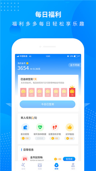 5、当然通过签到也可以获得金币奖励,各种新人任务和日常任务随时完成领取丰厚奖励;