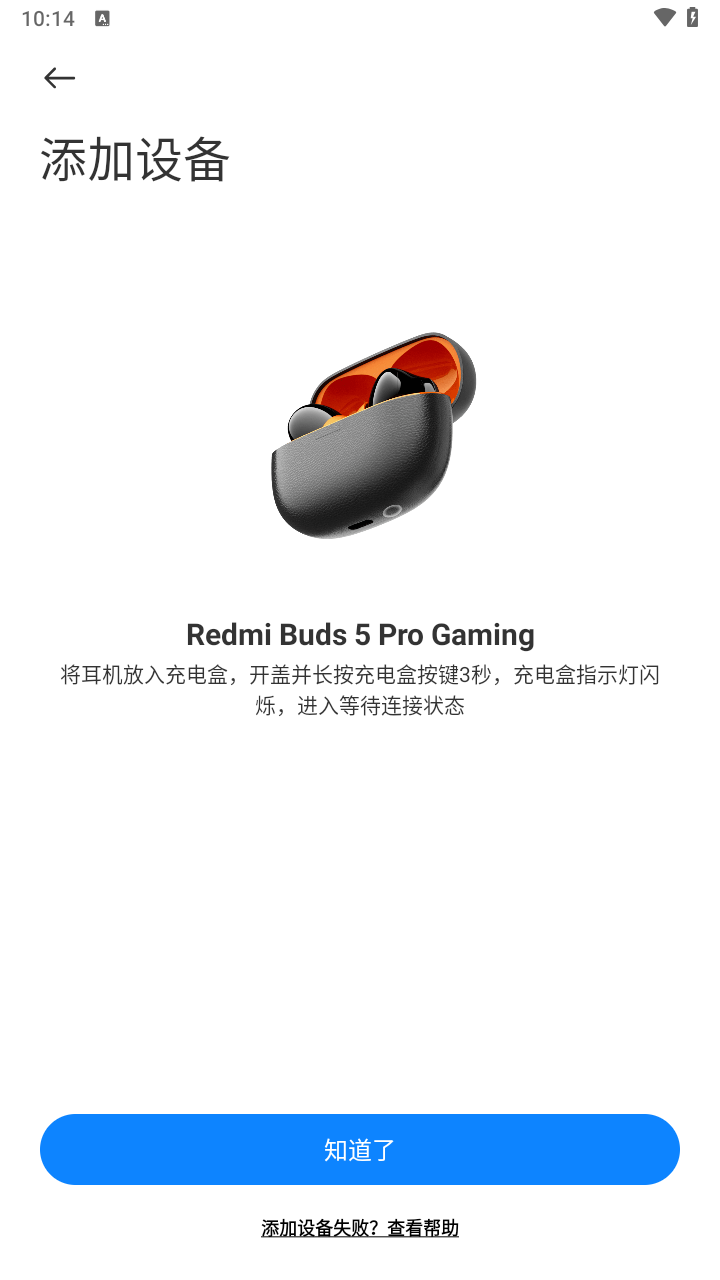 2、先要确保耳机放在充电盒,开盖并长按充电盒按键3秒,充电盒指示灯闪烁,代表进入等待连接状态,这样耳机就会自动连接app了
