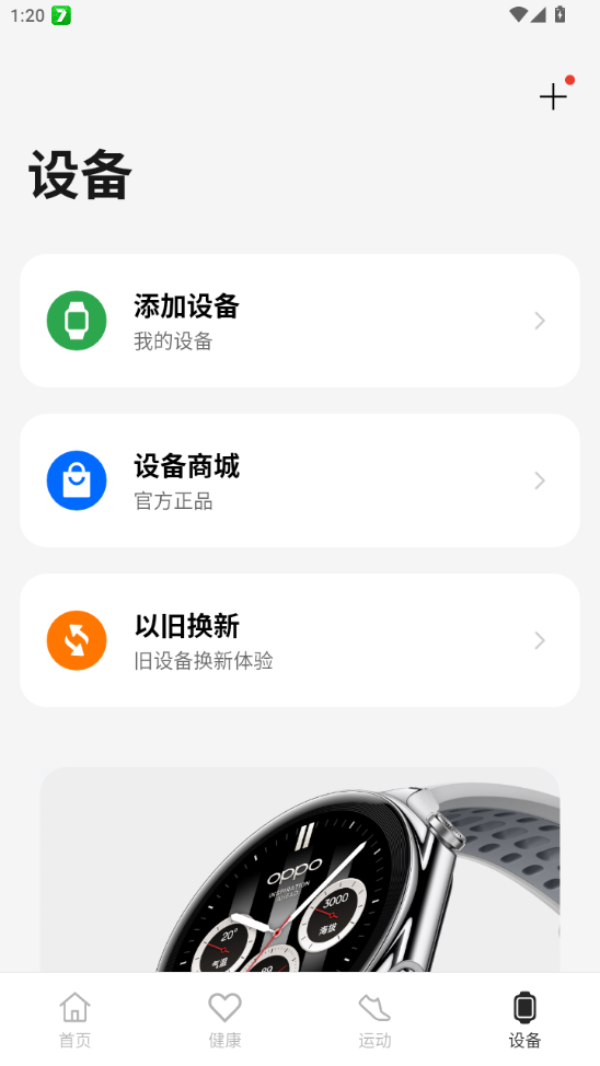 接着打开欢太健康,登录oppo账号,点击右下角“设备”,并选择“添加设备”;
