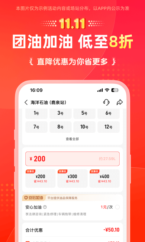1、为汽车加油提供最大的折扣活动,让用户更准确地了解不同的加油折扣。