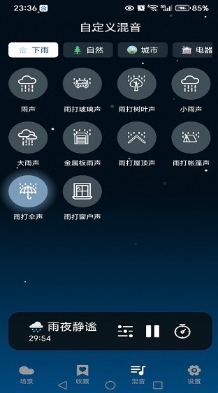 3、精准的声音分层技术,将雨声分为小雨、中雨、暴雨不同层次,你可以根据心情和睡眠需求自由选择,增添助眠趣味性。