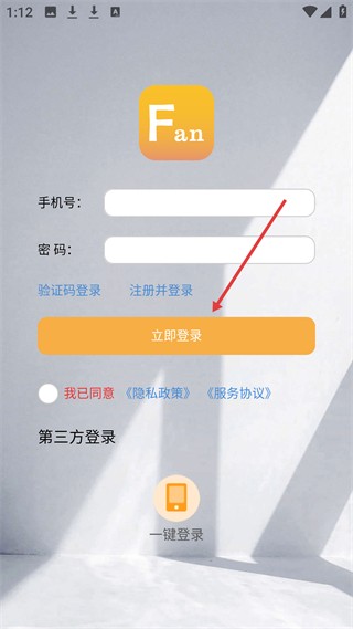1、登录板块,提供手机号密码登录、验证码登录、注册并登录方式,也可选择第三方一键登录,需勾选同意隐私政策与服务协议。