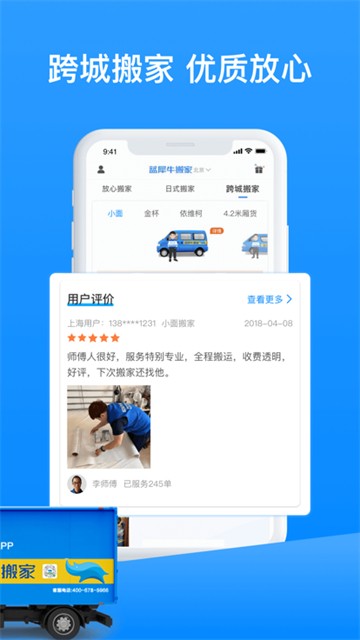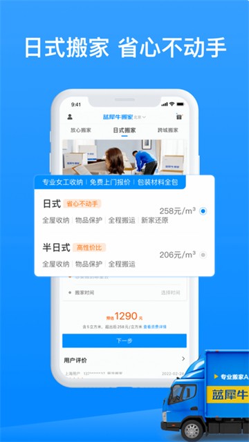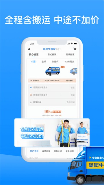 v4.8.14蓝犀牛搬家app是一款可以帮助用户搬家的预约软件,在这里你可以选择不同的搬家模式,又欧统搬家、办公室搬迁和国际搬家等等。搬家过程中一次结清费用,中途不加价,我们会全程呵护你的所有东西,保证用户搬家的省心和放心。