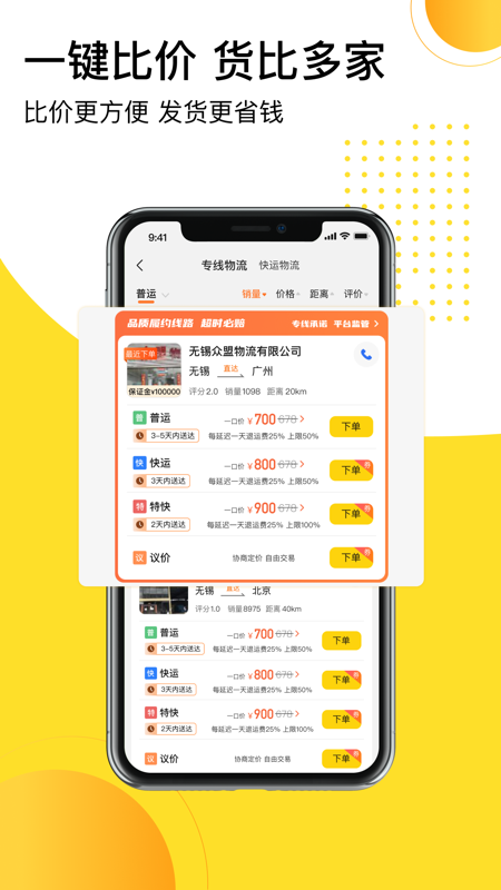 1、在这款平台上可以进行各种货物物流订单的价格查询。