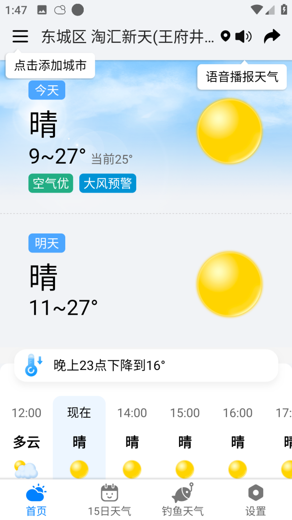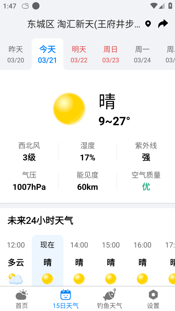 2、24小时气温趋势:直观展示24小时天气与温度变化情况,今日天气实时掌握;