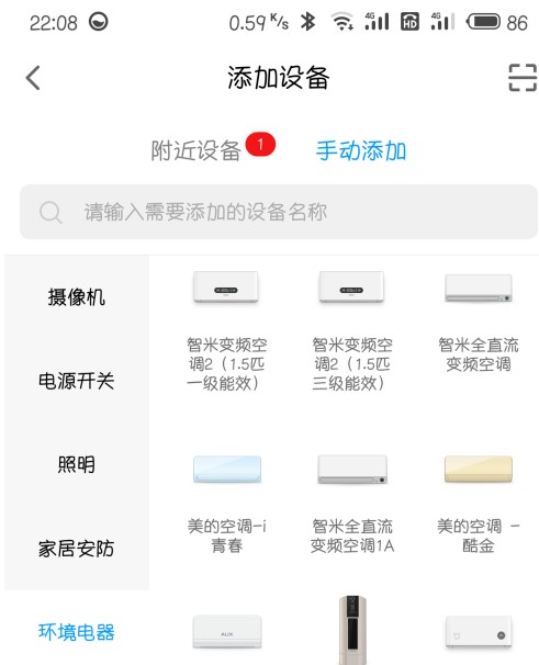 1、打开米家app,点击下方的添加按钮出现设备的分类;