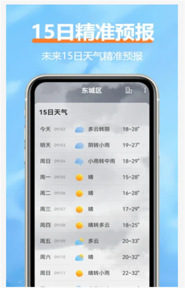 3、不仅可以预报当天的天气,并且未来15天的天气趋势也会有详细的发布,为一些准备提前安排的事情做准备。