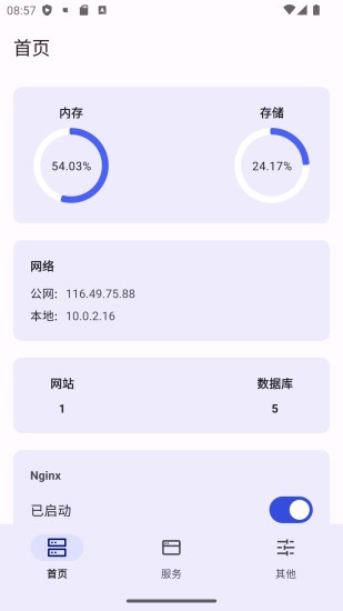1、Nginx服务:在安卓设备上运行高性能的Nginx服务器,支持静态网站托管和反向代理。