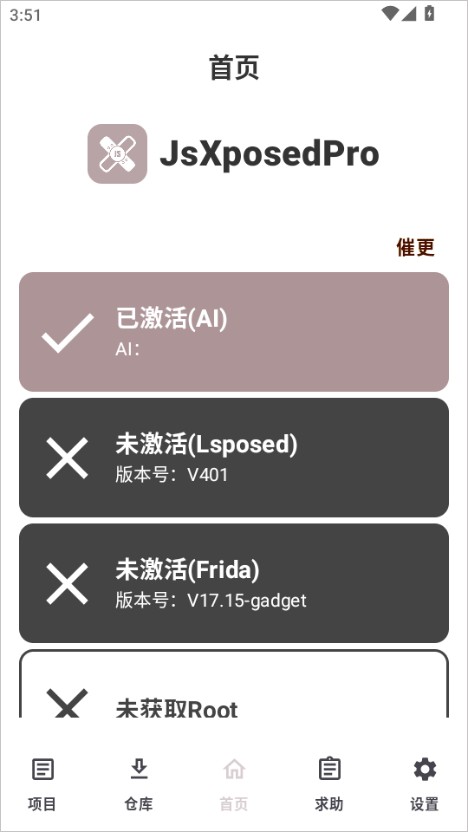 1、在本站下载安装好jsxposedpro最新版本,运行软件,首次使用需要激活;