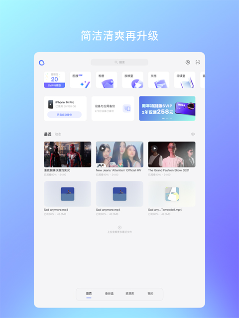 阿里云盘ipad版是大家都可以关注的一个云盘软件,对文件也能进行系统的分类,该软件为用户提供了超大的存储容量,可以保存的一些文件图片和视频还是很多的哦,大家也可以对一些工具进行各种回应,文件相册都是可以备份的,想要多少内存都可以领取哦!