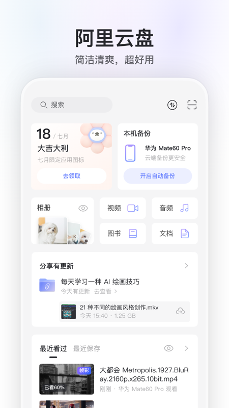 1、阿里云网盘app随时随地查看文件。