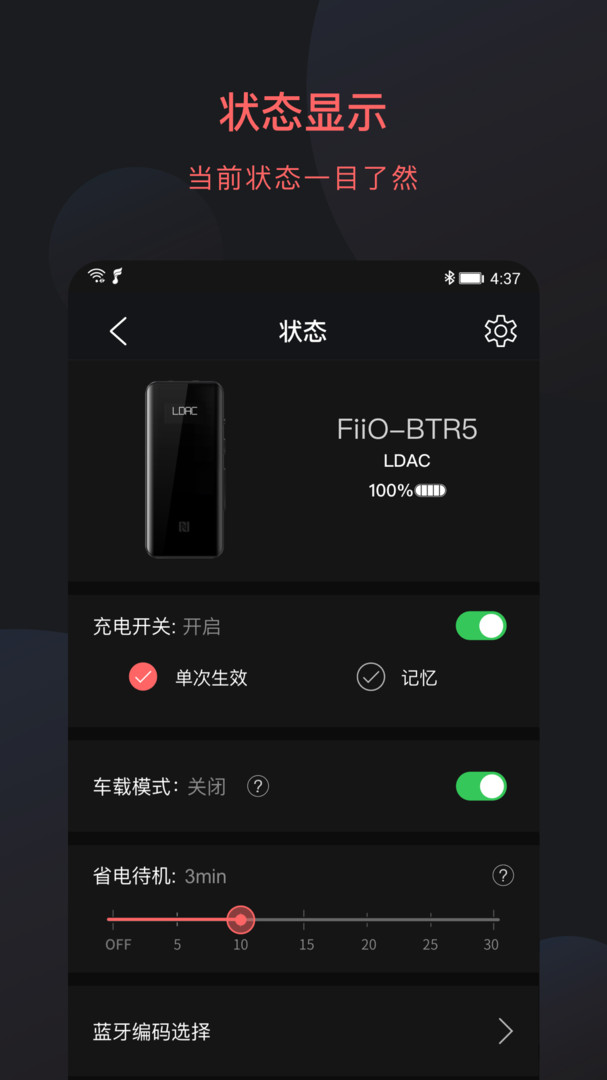 1、多元设备支持:兼容Q5、Q5s、BTR3、BTR3K、BTR5、EH3 NC、LC-BT2等多款飞傲蓝牙设备,更多新品持续接入,让您的设备焕发新生。