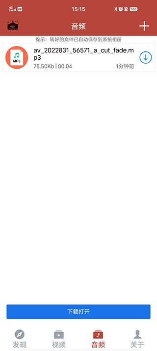 4、剪辑好后,点击确定即可自动保存在音频里了,可以随时畅听。