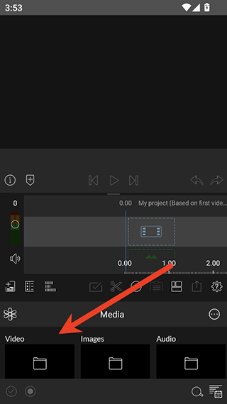 点击屏幕左上角的媒体导入图标。