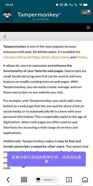 或者在首页点击左下角的图标,就可以看到“我的扩展”,显示的就是安装的插件。